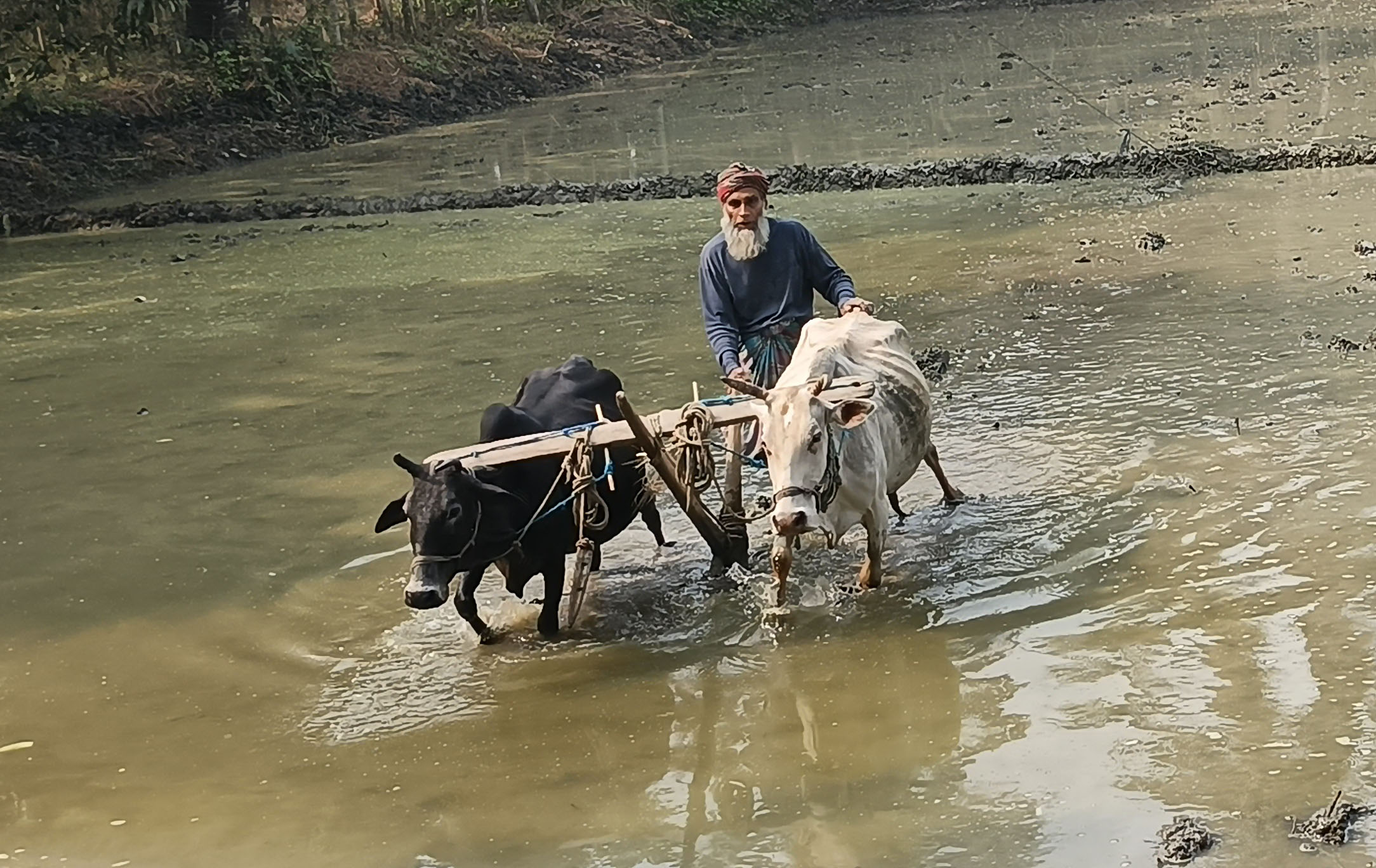 অভয়নগরে বলদ দিয়ে হালচাষ টিকিয়ে রাখতে মরিয়া কৃষক আমির আলী